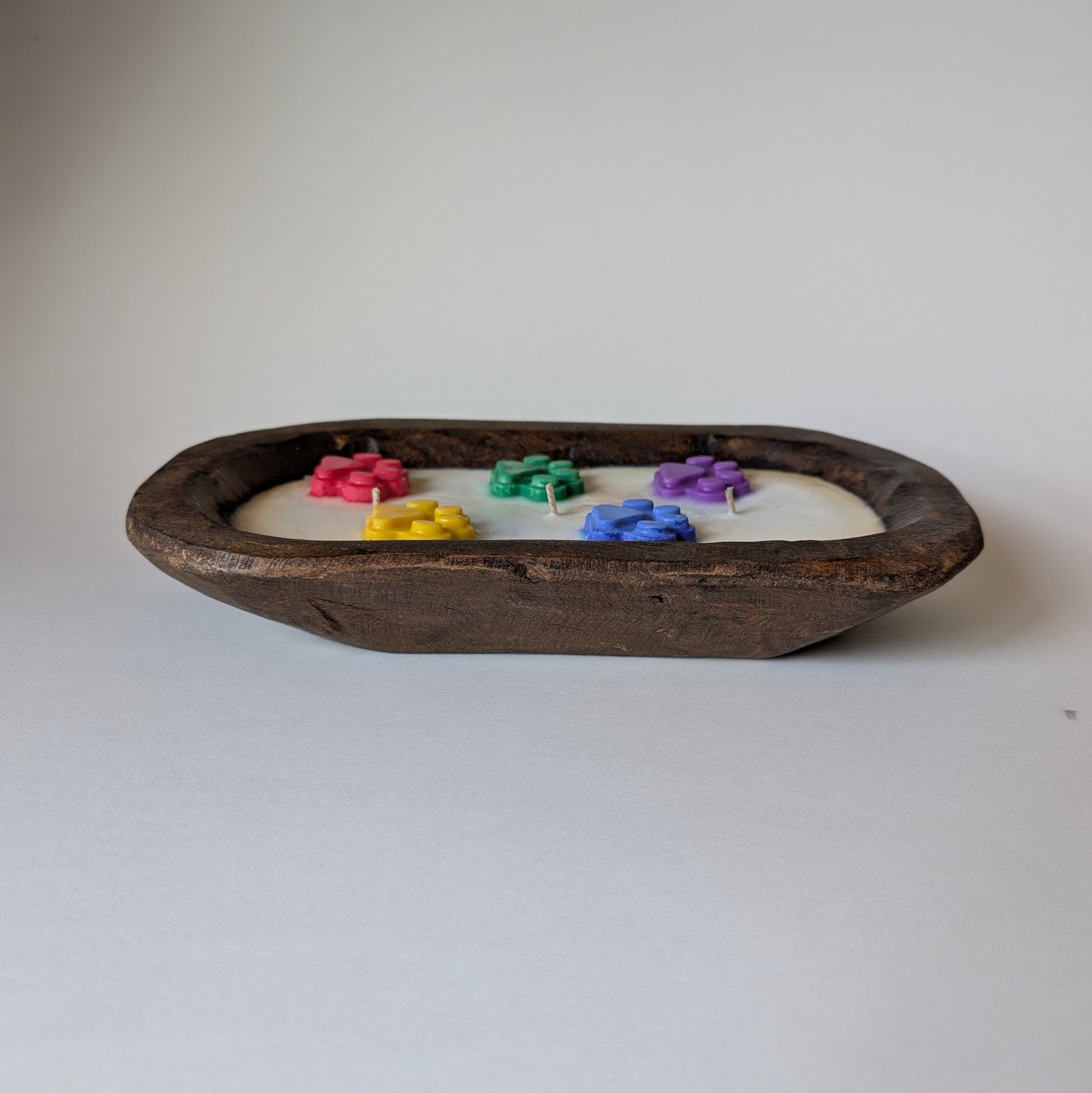 Featuring hand-poured rainbow paw prints.